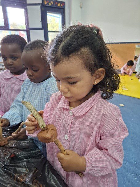 Presentamos a los niños una bandeja sensorial con elementos propios del otoño, invitándolos a explorar libremente. Al colocar la bandeja en el suelo, los niños se acercaron con curiosidad. Algunos tocaron los diferentes objetos, otros observaron atentamente las diferentes formas y colores. Hubo quienes se lo llevaron a la boca